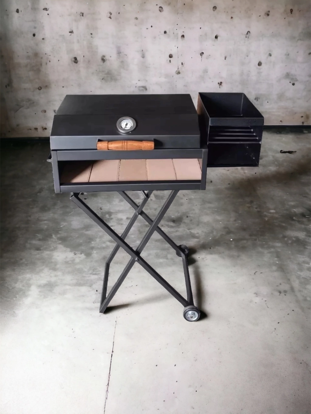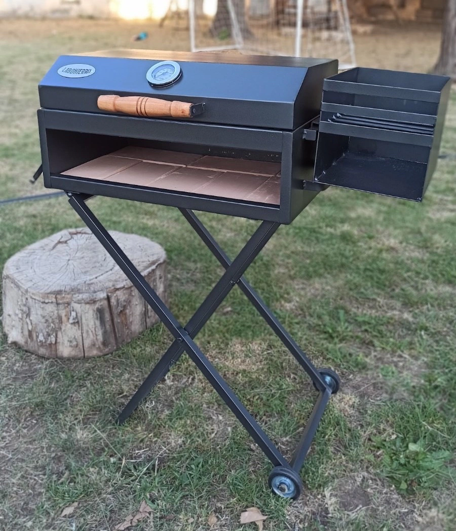• TAPA FIJA CON MANIJAS DE MADERA Y RELOJ PIROMETRO.